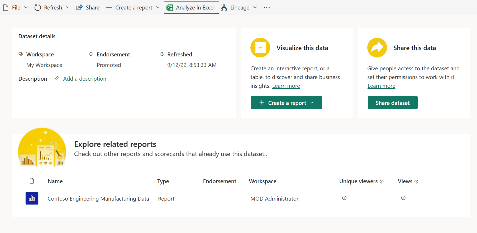 Connect to your semantic model as usual using Analyze in Excel. Make sure you’re using explicit measures or fields that support detail rows, then double-click a leaf-level PivotTable cell to explore the data.